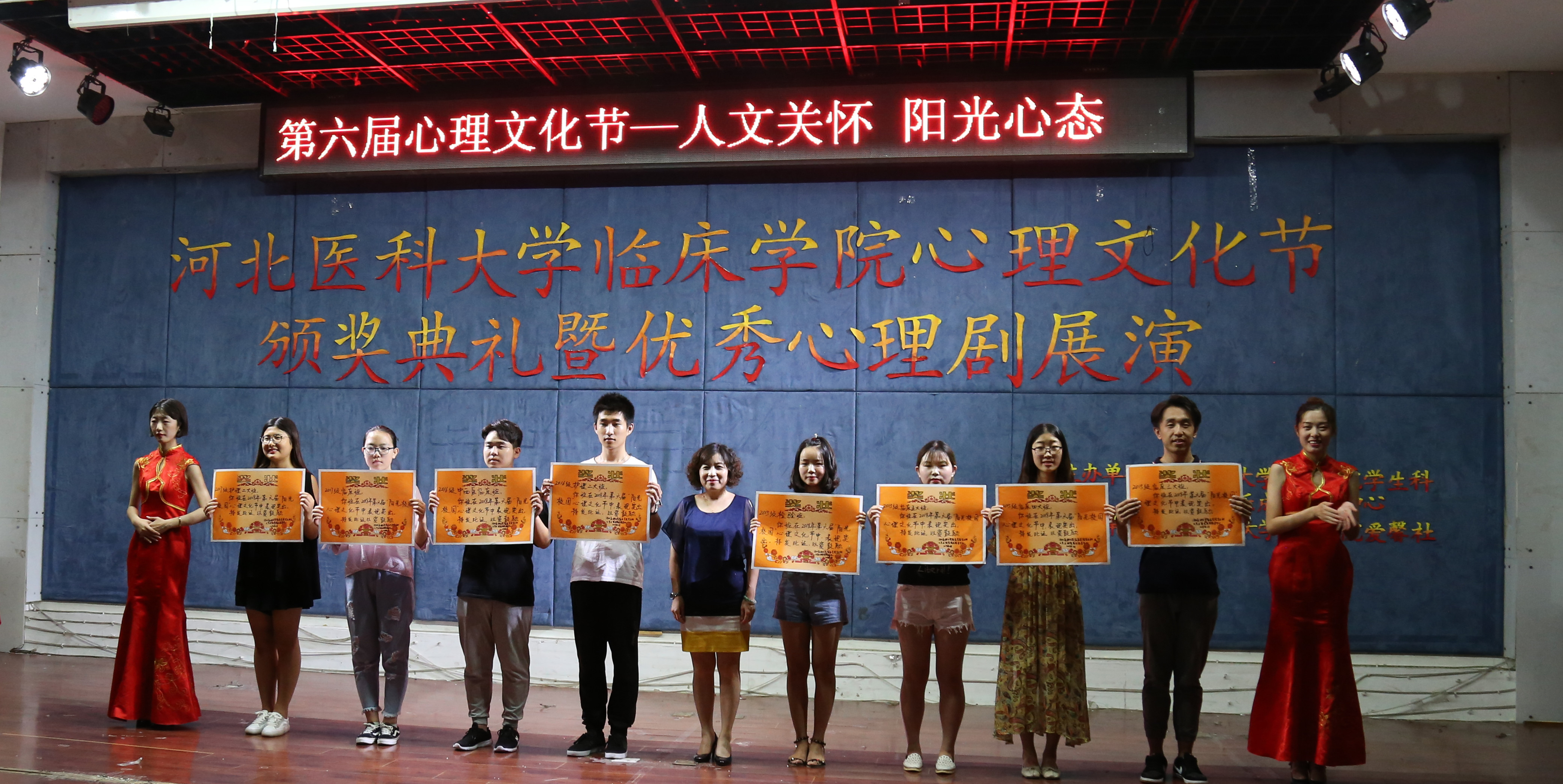 2018年6月5日,蜜桃直播 学生科在博学楼九楼报告厅举办第六届“阳光校园”心理文化节颁奖典礼暨优秀心理剧展演,学生科科长赵俊峰老师、副科长杨宏敏老师、2015级年级主任梁晓芸老师、2016级年级主任穆建军老师、2017级年级主任于会利老师、2015级、2016级、2017级心理组长及全体辅导员参加了此次颁奖典礼。