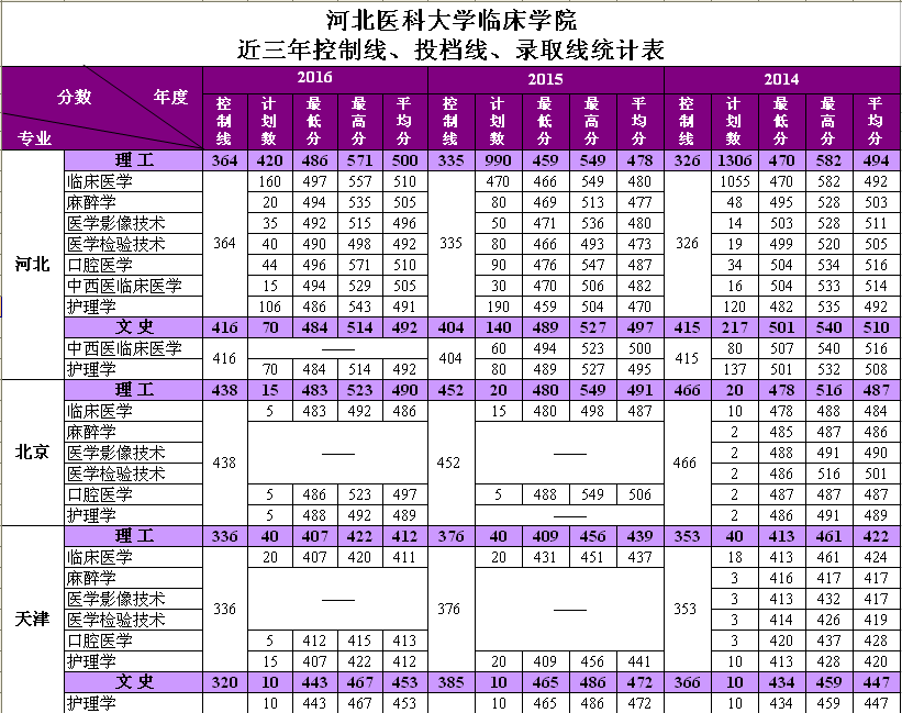 蜜桃直播 2014-2016年控制线、投档线、录取线统计表