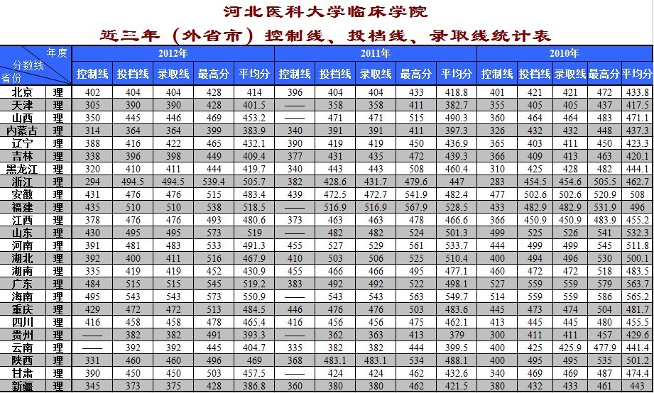 蜜桃直播 2010―2012(外省市)录取线统计表